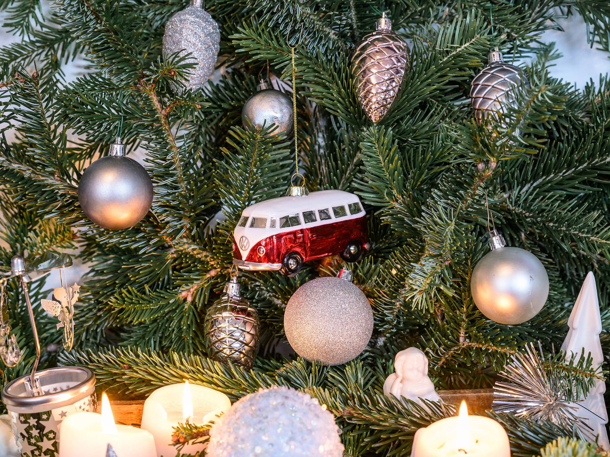 🚍 Design iconique : le légendaire VW T1 Bus, revisité pour les fêtes, symbole d’aventure et de nostalgie.